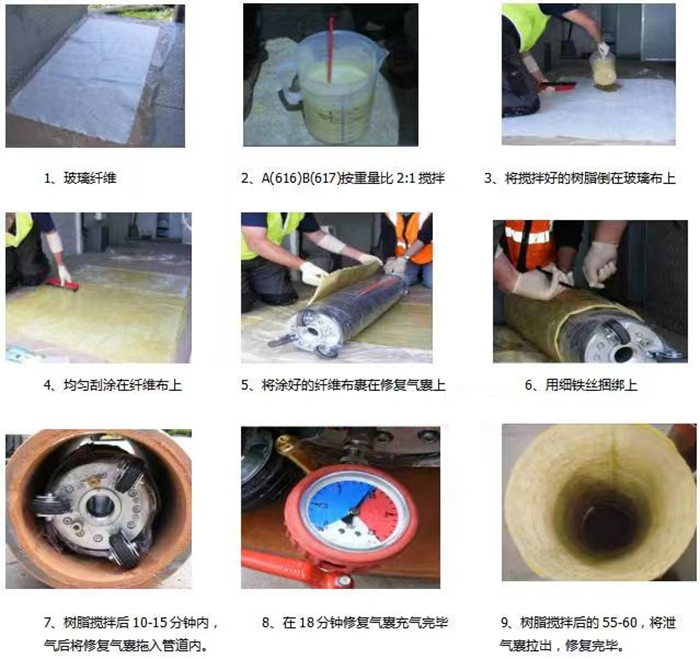 管道维修是指根据管道的破损点对现有管道进行直接维修,以实现管道的正常运行。根据管道的具体情况和材料,采用机器人或人工方法(管道维修用气囊、管道维修材料)进行点对点维修。